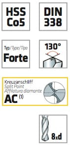 - wiertła z dodatkiem kobaltu o dużej wytrzymałości - idealne zastosowanie do najtwardszych stali nierdzewnych