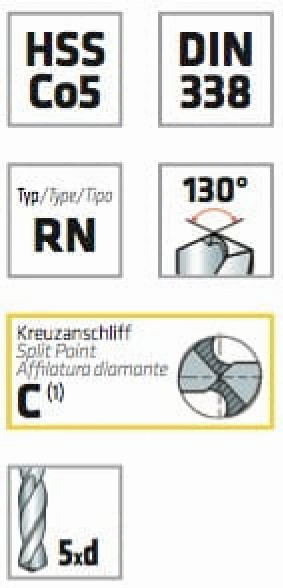 - wiertło z dodatkiem kobaltu o dużej wytrzymałości - idealne zastosowanie do najtwardszej stali kwasoodpornej