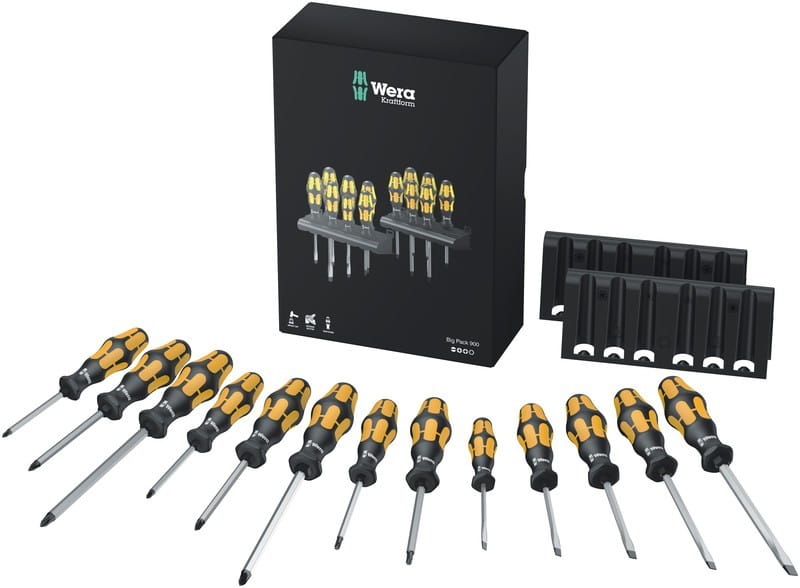 Wkrętaki (śrubokręty) do pobijania płaskie/PH/PZ/TX zestaw 13 szt. + wieszak Wera Kraftform Big Pack 900