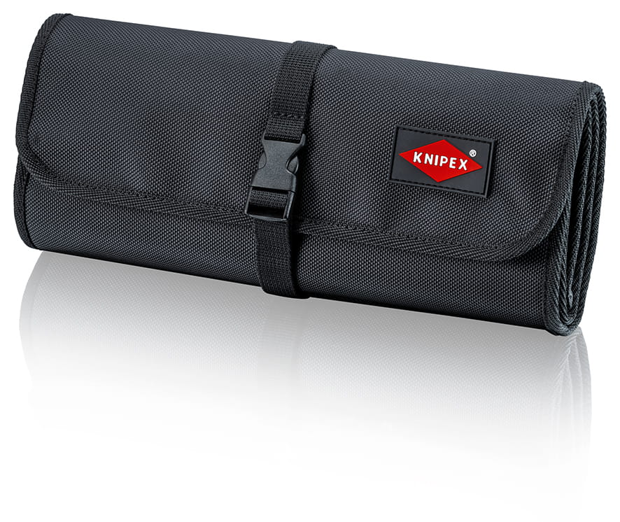 Zestaw profesjonalnych narzędzi izolowanych firmy Knipex, na rolce wykonanej z wytrzymałej tkaniny poliestrowej. Z praktycznym, regulowanym zapięciem szybkiego zwalniania. Wyposażony w szereg izolowanych narzędzi KNIPEX do prac przy instalacjach elektrycznych. Wymiary otwarte (dł. x wys.): 830 x 310 mm. Przydatny do prac warsztatowych i serwisowych.