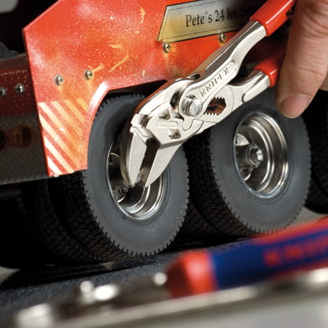 - zawsze równoległe szczęki umożliwiają chwytanie precyzyjnych elementów złącznych (np. chromowanych nakrętek sanitarnych) bez ryzyka ich uszkodzenia