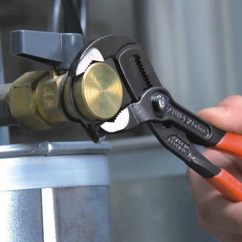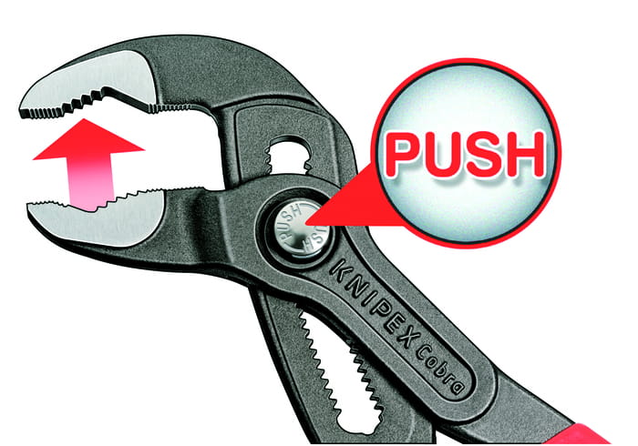 - zawsze równoległe szczęki umożliwiają chwytanie precyzyjnych elementów złącznych (np. chromowanych nakrętek sanitarnych) bez ryzyka ich uszkodzenia