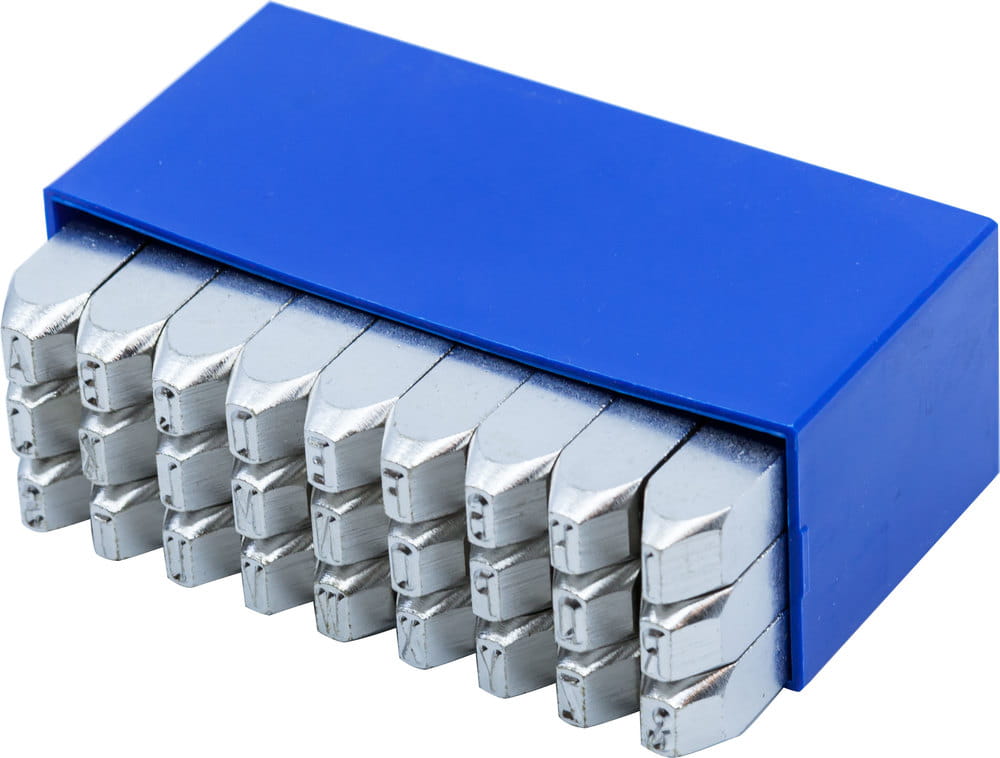 - zestaw profesjonalnych znaczników (numeratorów) firmy Gravurem do znakowania cyfr na elementach wykonanych z metalu i stali nierdzewnej